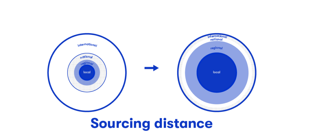 Door het aan mobiliteit en monocultuur opgegeven oppervlak in te richten voor lokale productie ontstaat een gezondere, groenere en klimaatadaptieve leefomgeving met een grotere biodiversiteit. De ermee gepaard gaande arbeid kan worden ingevuld door bij zorg vrijkomende inspanningen maar vraagt ook meer lokale samenwerking. Gebouwen worden meer ingericht op een lokale functie en bieden collectieve voorzieningen om lokale verwaarding mogelijk te maken. Vanwege de klimatologische en geografische verschillen tussen steden zullen op een groter schaalniveau in groeiende mate uitwisseling tussen steden in de regio plaatsvinden. Hierdoor is grootschalige import niet langer noodzakelijk. Voor speciale gelegenheden kan onze behoefte worden aangevuld met ingrediënten van exotischer herkomst. Voor materialen die we in de bouw toepassen geldt hetzelfde waarbij de productie van voedsel en bouwmaterialen samen kunnen gaan en materiaal hubs de lokale kringloop en onderhoud van gebouwen mogelijk maken. Ook voor producten zou het systeem omgevormd kunnen worden door het faciliteren van delen/repareren/uitwisselen. De levensduur en kwaliteit van producten wordt verhoogd. Dit alles leidt tot een aanzienlijke reductie van vervuilende vervoersbewegingen met kostbare en energieslurpende machines waarvoor bij de productie ook weer schaarse grondstoffen benodigd zijn.