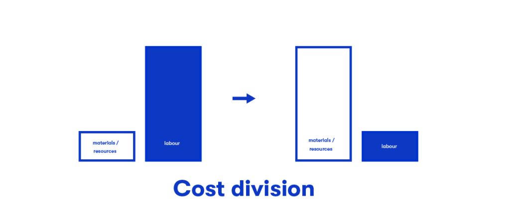 Dat komt ten eerste omdat de bouwsector zeer arbeidsintensief is. Het grootste deel van een bouwproject bestaat uit loonkosten. Circulair bouwen is nog arbeidsintensiever, met name omdat secundaire bouwmaterialen weer gereed gemaakt moeten worden voor een ‘tweede leven’, zodat ze weer hoogwaardig toegepast kunnen worden. Circulaire bouwmaterialen moeten zien te concurreren met lineaire bouwmaterialen. Dat is onmogelijk vanwege de cost efficiency, schaalvoordeel en lagere loonkosten-component in de lineaire economie. Er is simpelweg gezegd geen level playing field.